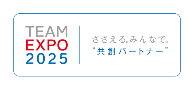 このロゴマークは、大阪・関西万博のテーマである「いのち輝く未来社会のデザイン」を実現し、SDGsの達成に貢献するため、多様なセクターが主体となり、理想としたい未来社会を共に創り上げていくことを目指す取組みである「TEAM EXPO 2025」プログラムに参加している取組みであることを表しています。